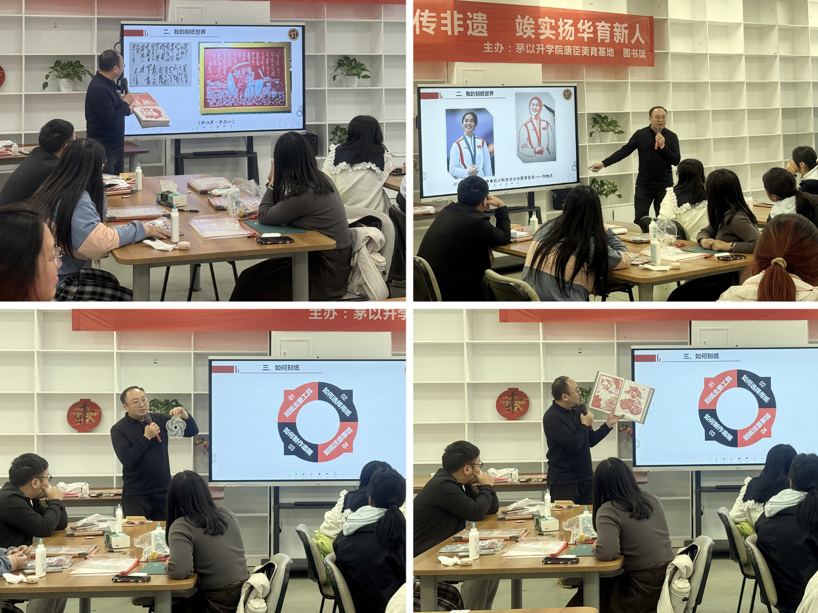 联合图书馆在犀浦校区图书馆TA615多功能活动室共同举办了“指尖刻纸传非遗,竢实扬华育新人”唐臣美育主题活动。