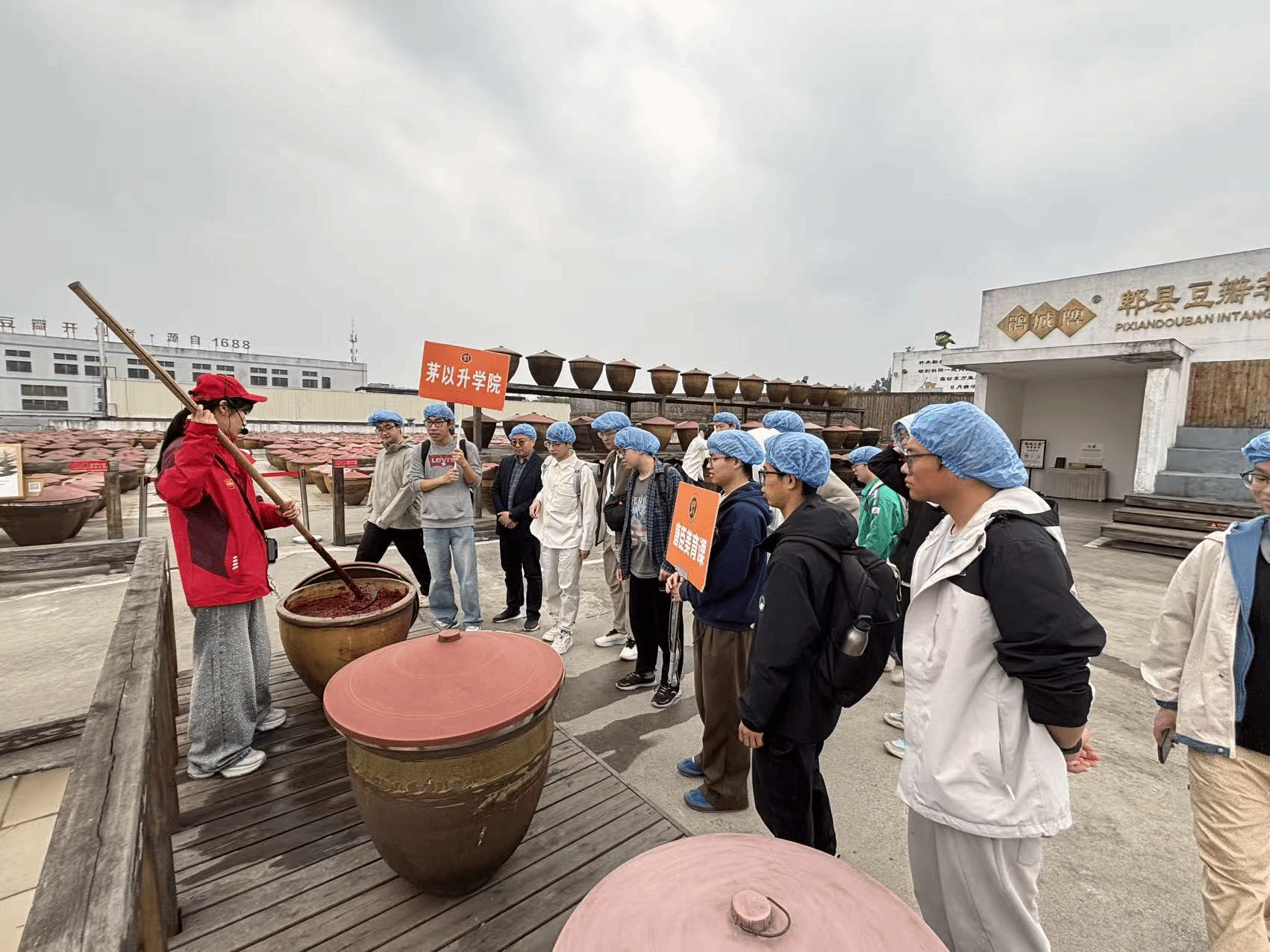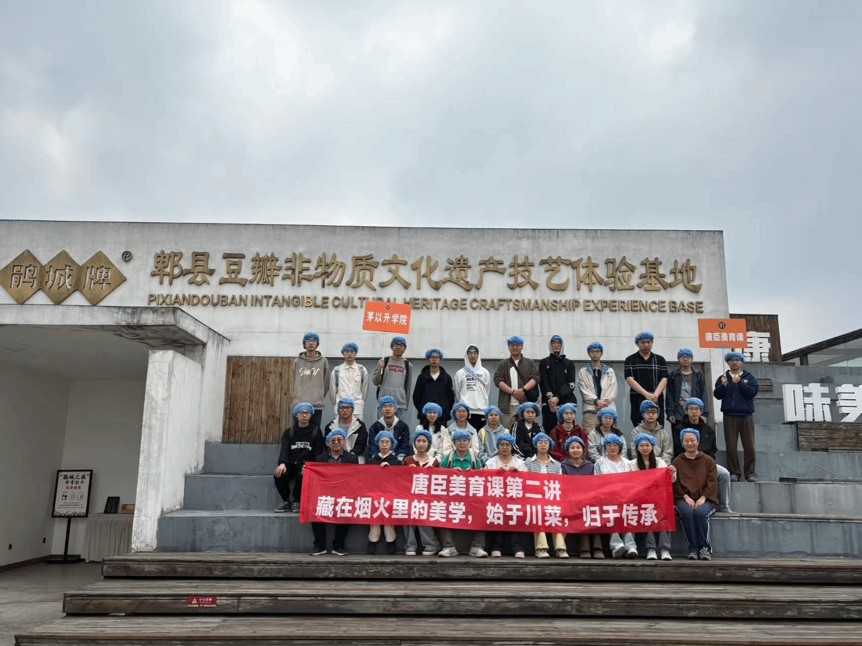 课程第二站,师生们前往四川省郫县豆瓣股份有限公司(鹃城牌)。作为“川菜之魂”郫县豆瓣的行业标杆、中华老字号与非遗技艺传承单位,这里是理解川菜美学基石的关键所在。
