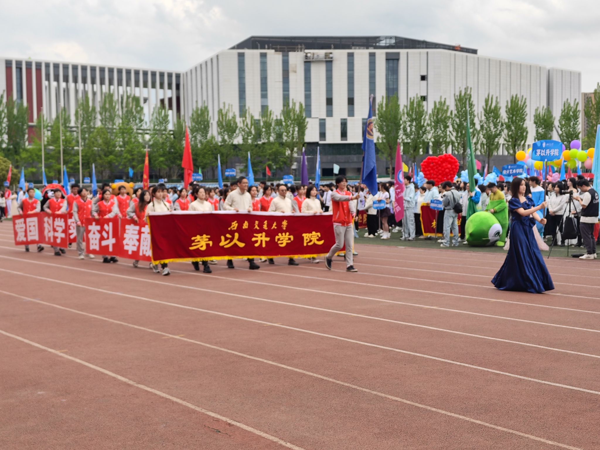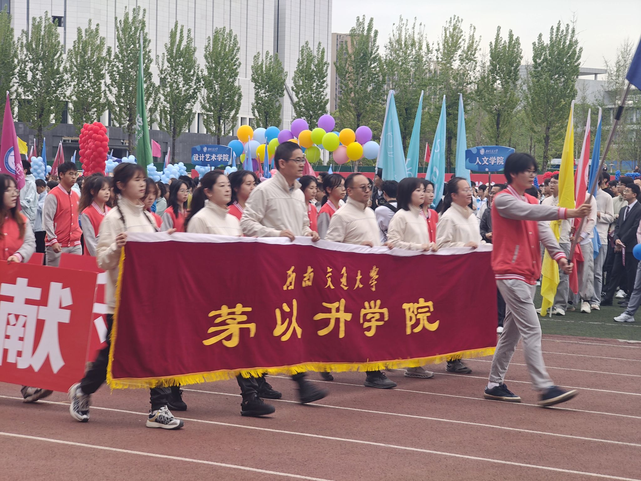 方阵步伐铿锵、口号嘹亮,创意队形与特色道具相得益彰。同学们精神饱满、身姿挺拔,以规范动作与默契配合,生动诠释了“爱国科学、奋斗奉献”的茅以升精神气质,彰显了“求实创新、卓尔乐群”的茅院学子情怀。