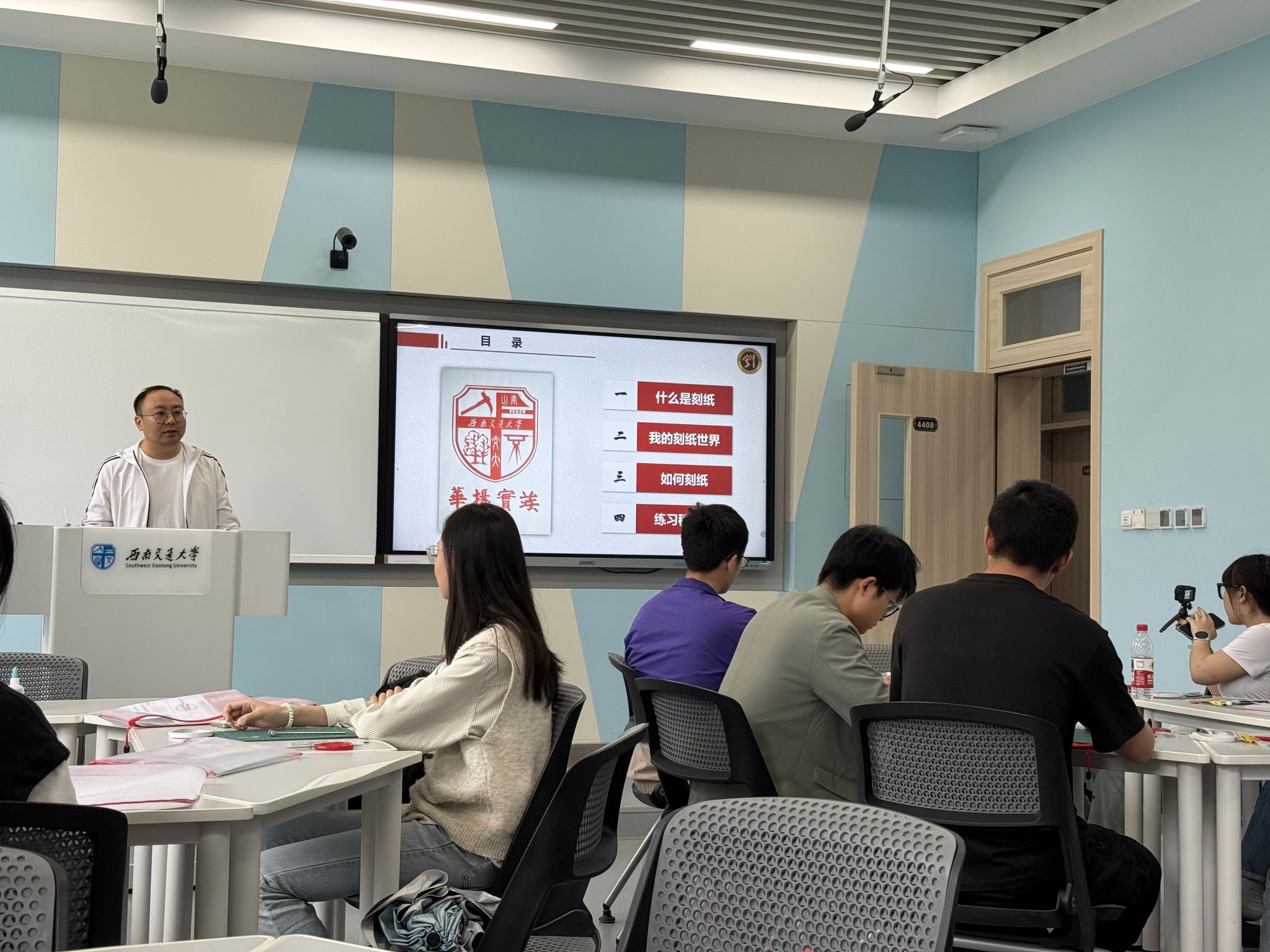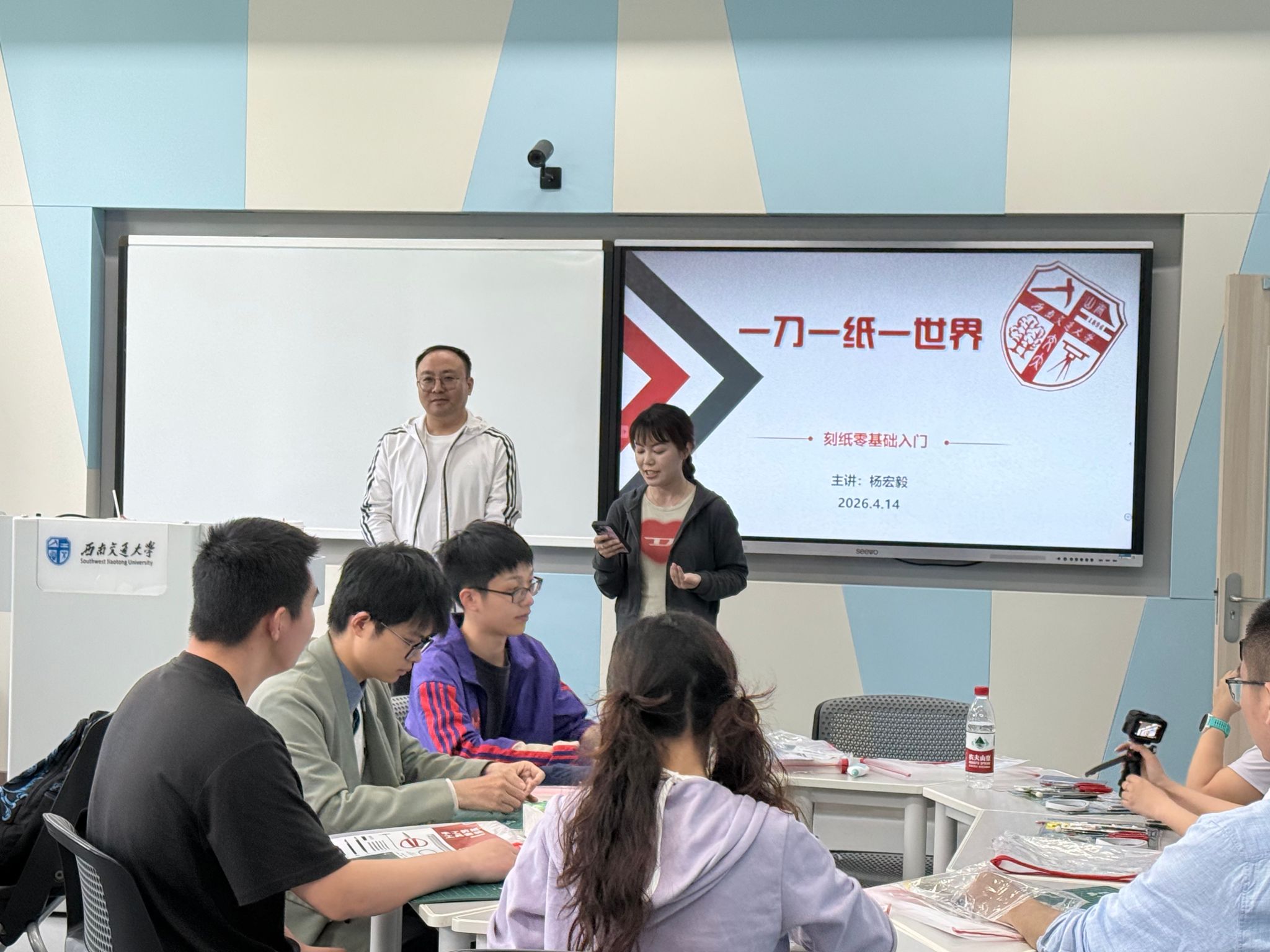 为传承中华优秀传统文化,深化非遗文化育人实效,丰富校园美育内涵,为交大诞辰一百三十周年献上祝福,2026年4月14日下午,欧美A片 联合峨眉校区团委主办,唐臣美育基地承办的“指尖刻纸传非遗 以美育人迎百卅”非遗刻纸体验活动在峨眉校区顺利开展。体验活动由欧美A片 党支部副书记杨宏毅主讲,欧美A片 专职组织员孟涵,峨眉校区团委书记宁诗涵参加了活动。