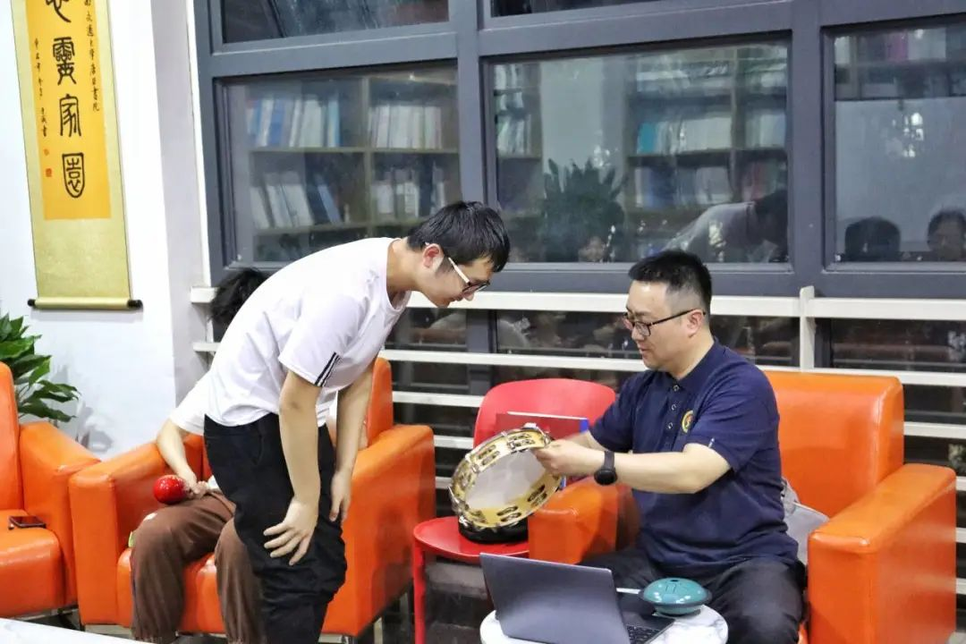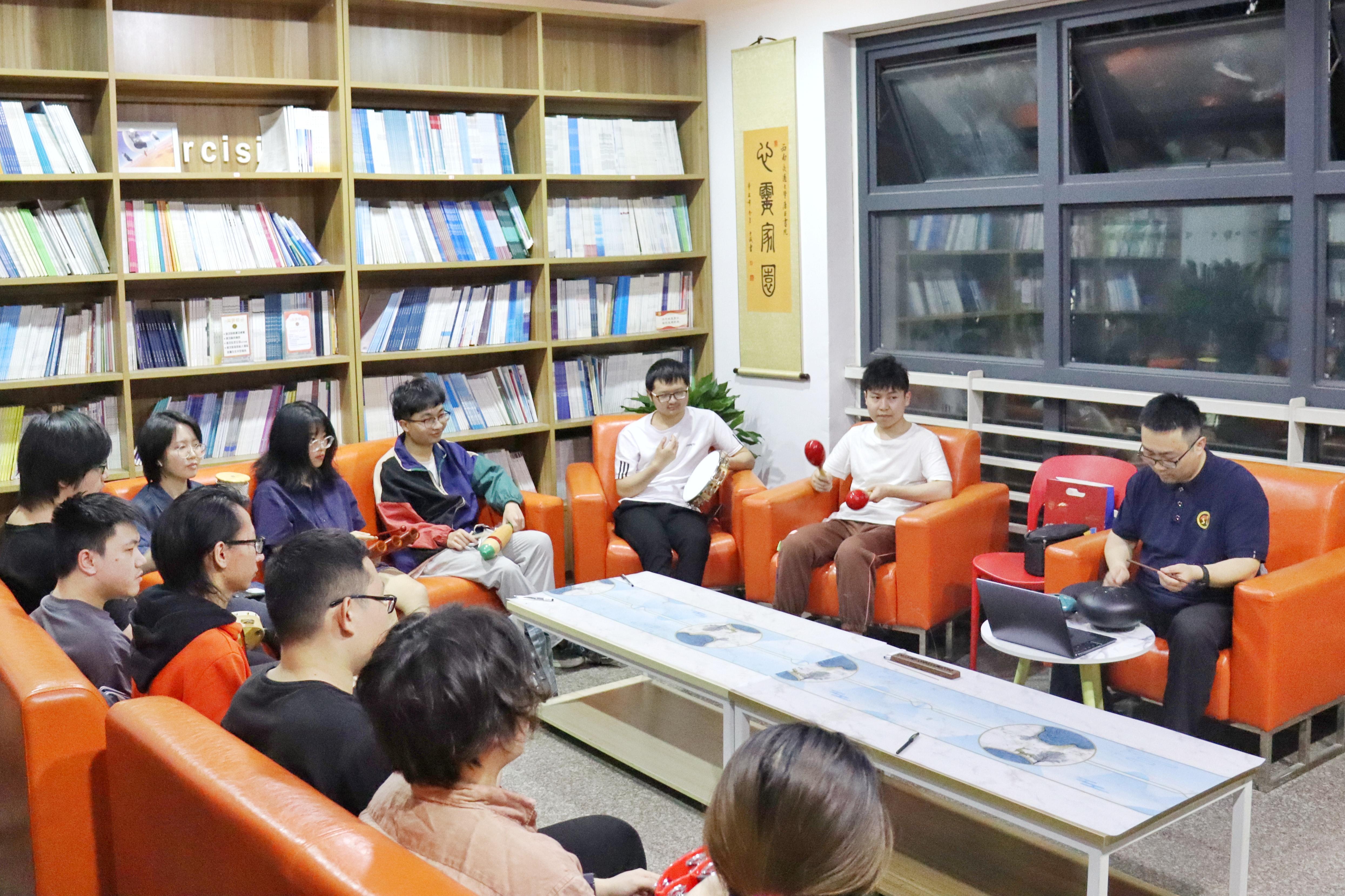 党总支书记甘霖老师主持,任凯利老师担任音乐治疗助手。甘老师带领同学们共同经历了一次不一样的美妙、温暖、宁静的心灵之旅,同学们用心去倾听、辨别、想象来自大自然和奥尔夫乐器发出的细腻丰富的声音······
