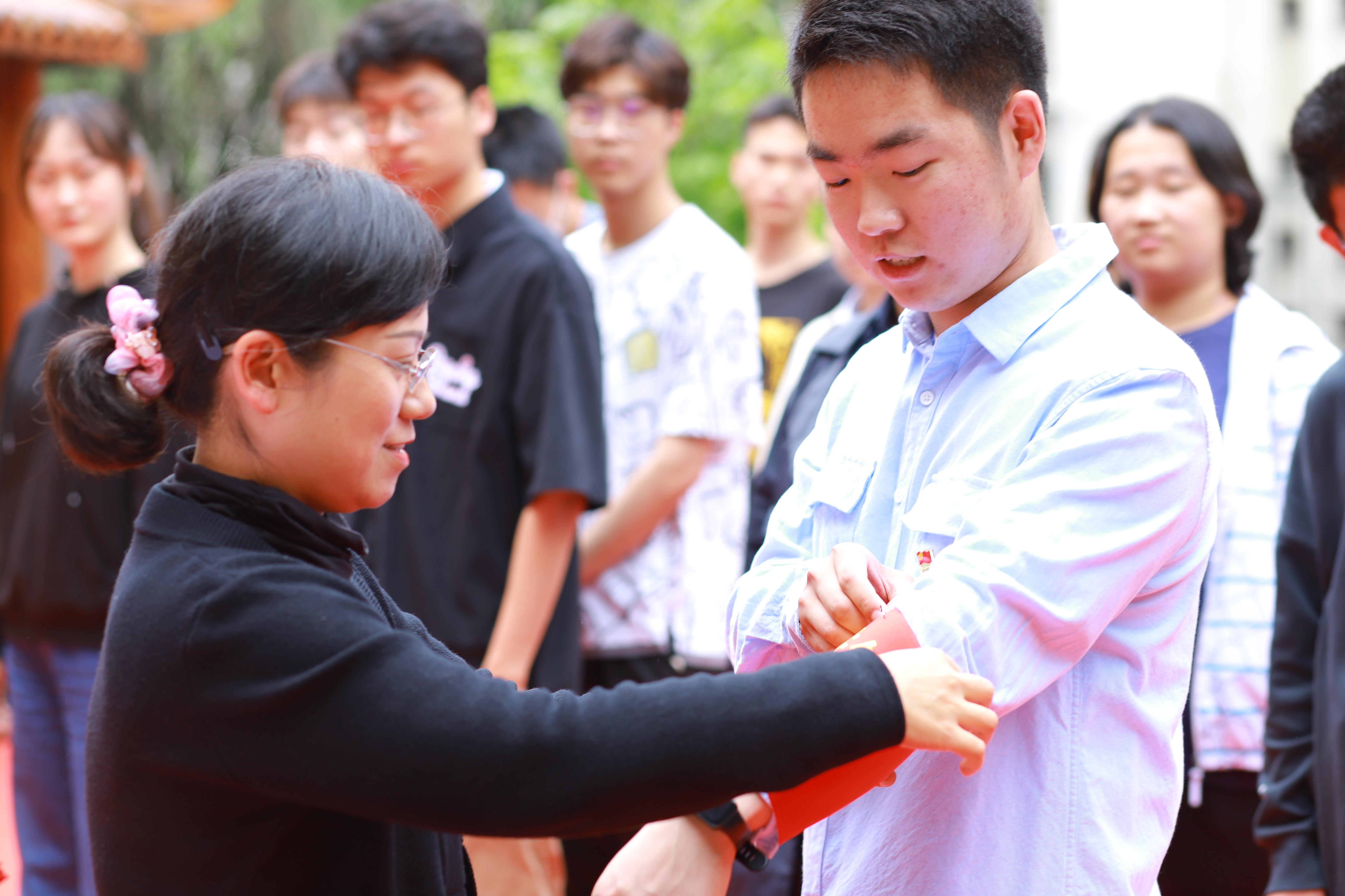 党总支副书记王霞老师向全体先锋队队员颁发袖标。王霞老师面带微笑将袖标依次颁发给每一位队员,她期待的笑容给队员们带来了鼓舞与激励。