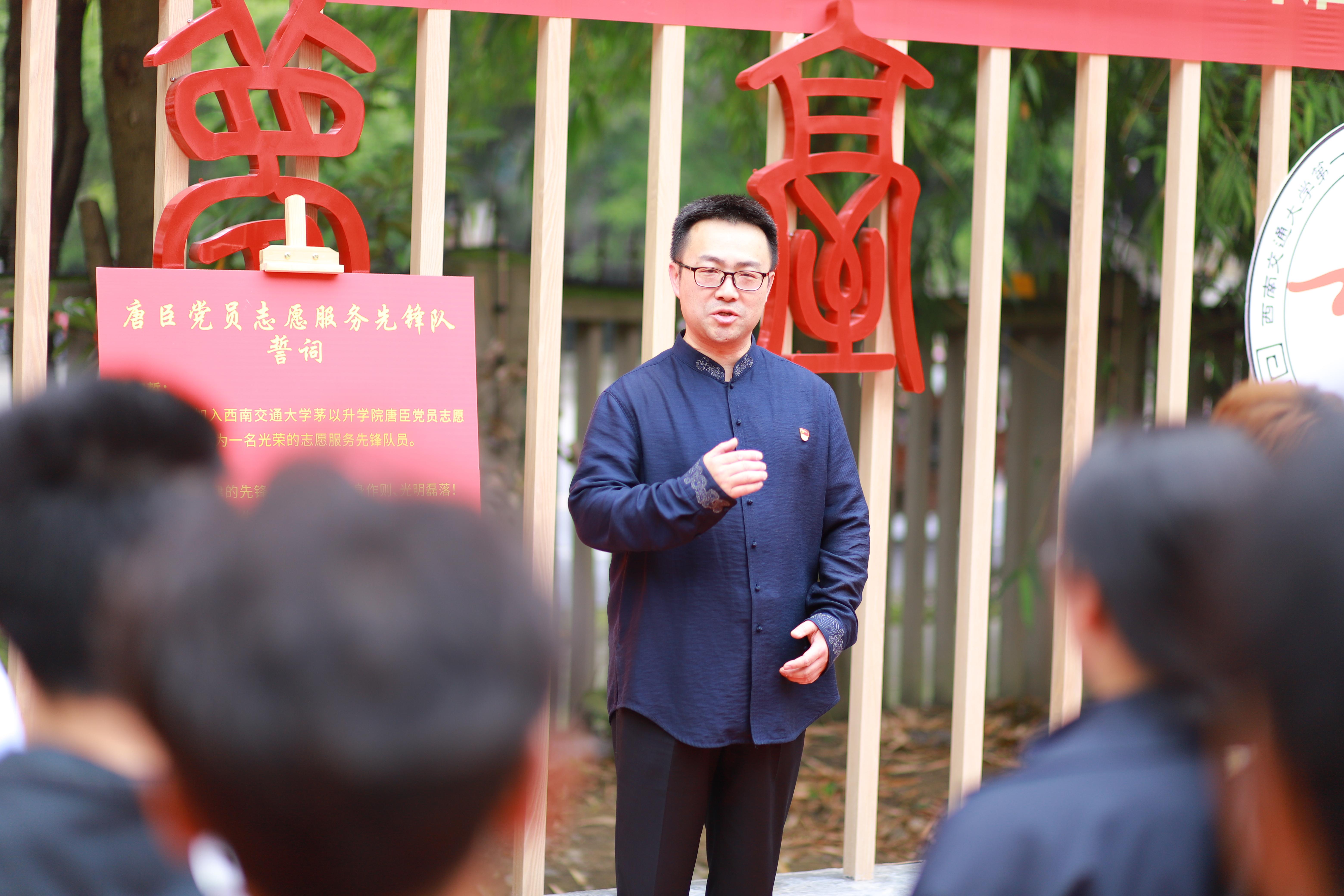 仪式最后,由甘霖书记致辞。甘书记指出,一个国家、一个民族要复兴、要强大就要有先锋,一个团体想要更好地发展离不开先锋的模范带头作用。他谈到,是党员就要做先锋,先锋就是榜样,就是要走在队伍的前面,无私无畏、任劳任怨地做他人不愿意做的苦事,锐意进取、开拓创新地做别人不愿意去挑战的难事。他认为,作为交大茅院学子,更要有报效祖国的爱国主义精神,更应当积极参与各项志愿服务,努力为师生、为学校、为社会、为国家贡献出自己的一份力,只有今日是书院志愿服务的先锋,未来才能成为中华复兴伟业的栋梁!