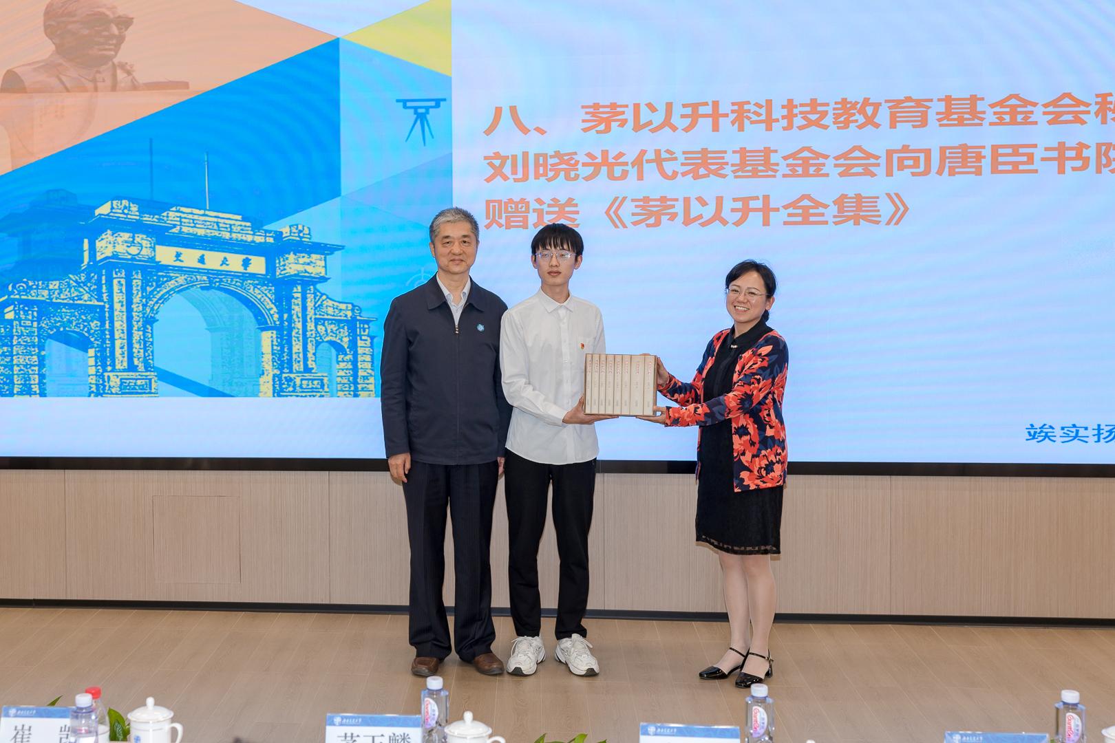 会上,茅以升科技教育基金会秘书长刘晓光代表基金会向欧美A片 师生赠送《茅以升全集》。