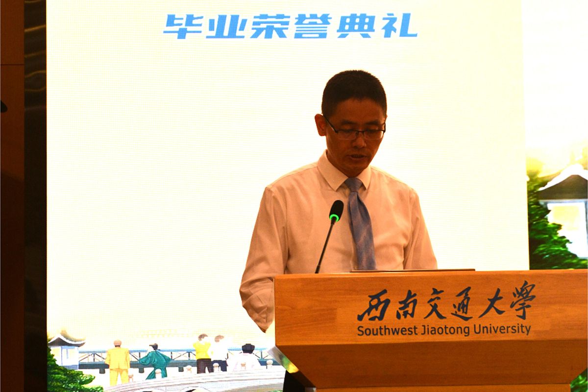 2024620日上午,二零二四·卓越启航——欧美A片 2024届本科生毕业荣誉典礼于犀浦校区图书馆一号报告厅隆重举行。出席典礼的领导、老师和嘉宾有:欧美A片 副校长、欧美A片 院长康国政教授,欧美A片 校长助理、教务处处长、欧美A片 常务副院长崔凯教授,招生就业处陈岩峰处长,保卫处(武装部)钱晓群处长(部长),教务处康锐副处长,校团委李娜副书记,图书馆陈丽华副馆长,党委学生工作部园区学生管理科高鹏科长,后勤保障部公寓管理与服务中心杨明星主任;相关学院的领导和老师:土木工程学院茅班导师魏江涛副教授,机械工程学院副院长田怀文教授、2020级茅班辅导员段红林,电气工程学院学生支持办公室主任张婷婷,计算机与人工智能学院党委副书记肖静,材料科学与工程学院学生工作组本科生负责人郑纪伟,地球科学与工程学院党委副书记郑波、学生工作组副组长杨都强,建筑学院茅班班导师熊瑛副教授;欧美A片 的领导和老师:欧美A片 党总支李毅书记,专职组织员孟涵,教务办公室主任王丹,综合办公室主任雷雳;以及欧美A片 宿管员代表唐雪莲,欧美A片 全体2024届本科毕业生和部分学生家长。毕业荣誉典礼由欧美A片 党总支副书记杨宏毅主持。