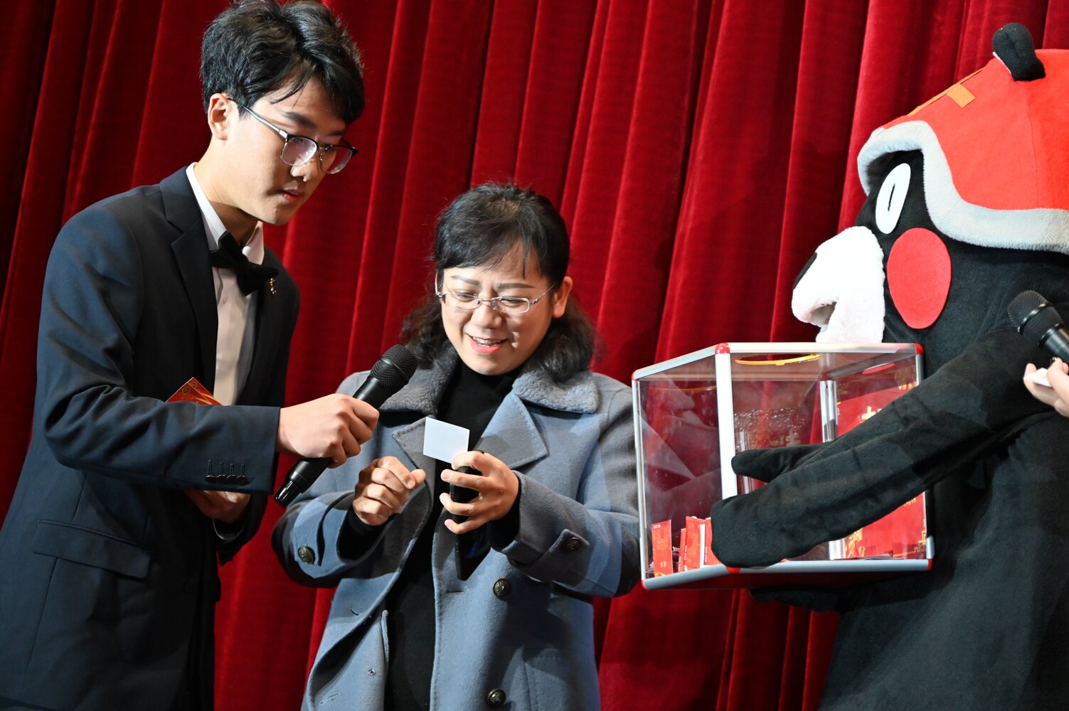 每当一个篇章圆满落幕之际,现场都会迎来最为激动人心的时刻——问答环节与抽奖环节。问答环节以茅以升先生的事迹和校史校情为主,旨在让同学们更加深入地了解较大杰出的校友以及学校的辉煌历史观众们积极参与,争相抢答,现场气氛热烈非凡。紧接着的抽奖环节更是将晚会氛围推向高潮,由李毅王霞刘鎏位嘉宾分为同学们抽取一二三等奖,幸运儿们满载而归,欢声笑语不断,为晚会增添了更多的乐趣与惊喜。