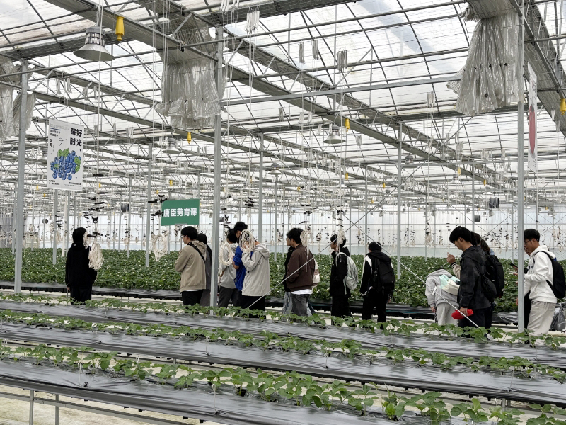 随后,同学们实地探访了工厂内的核心设施——“超高层垂直立体无人植物工厂”与“移动式智慧植物工厂”,并重点参观了西南地区规模最大的规模化立体栽培草莓智慧工厂。