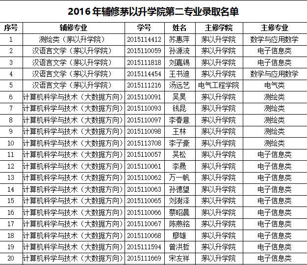 第二专业录取名单公布(见附表):