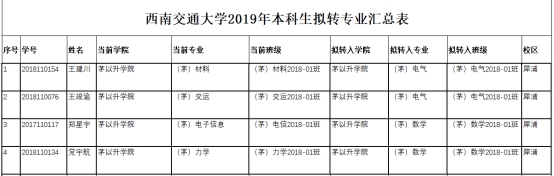 根据《欧美A片 本科生转专业管理办法》文件规定和欧美A片 茅以升学院2019年转专业的整体工作安排,经学生本人申请,学院考核,拟同意以下同学转入相关专业学习,并将相关事宜通知如下: