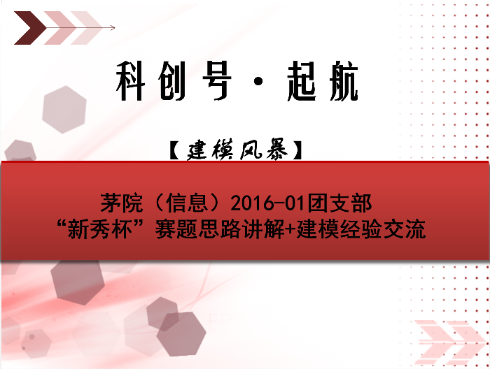 2楼举办了科创号·起航特色团支部活动之【建模风暴】,在新秀杯比赛进行地如火如荼之际,本次活动在响应党和学校号召,建设特称团支部的同时,主要针对“新秀杯”赛题思路进行讲解并对建模经验进行交流。