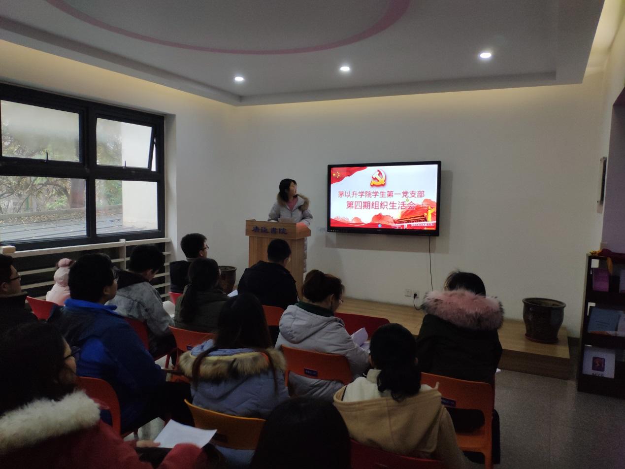 首先,史若冰同学概括了条例的意义和重要性。她指出《条例》的制定和实施,对于加强党的组织体系建设,推动全面从严治党向基层延伸,全面提升党支部组织力,强化党支部政治功能,巩固党长期执政的组织基础,具有十分重要的意义。