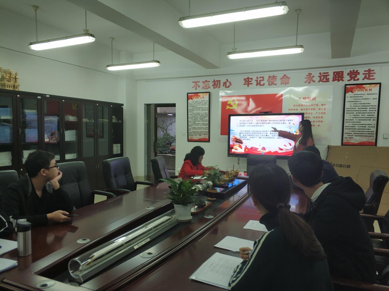 本次会议由陈玥蓉同志主持。首先,会议针对《中国共产党章程》《党规》重要内容指示与发展历程进行了简要的介绍与陈述。《中国共产党章程》是管党治党的总章程、总规矩,是中国共产党最根本的党内法规。《中国共产党章程》对党的性质和宗旨、路线和纲领、指导思想和奋斗目标、组织原则和组织机构、党员义务和权利以及党的纪律等作出根本规定。作为中国共产党党员,有义务认真学习中国共产党章程内容,严格按照《中国共产党章程》规定进行组织活动,严禁任何违法乱纪现象发生。