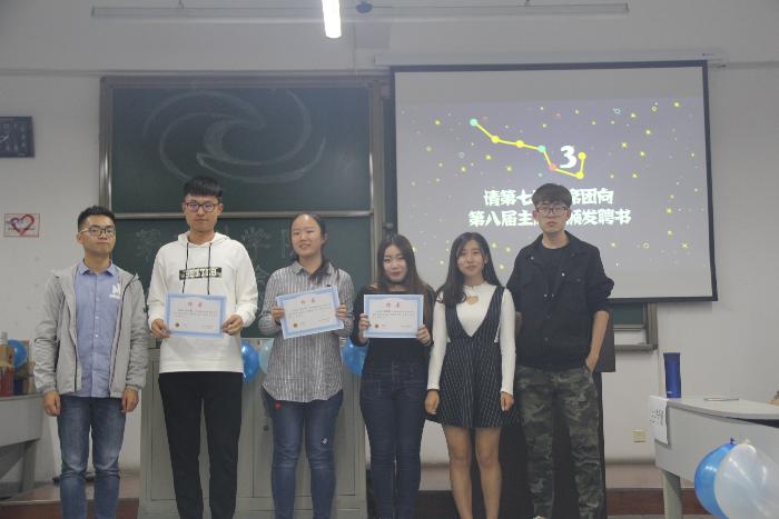 第七届主席曹一民首先致辞。他说,学生会是他的梦想,也非常高兴能迎来新面孔。他对新部员提出了两点建议:一是来学生会必有收获,要提高自己的能力;二是既然选择了这里,就不要轻言放弃。而他对部长们提出,部长是领导而不是管理,要提高团队凝聚力,要主动承担责任。