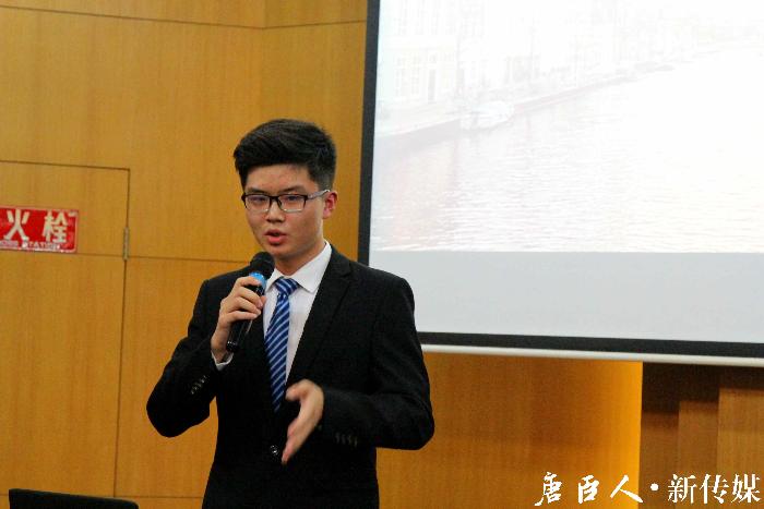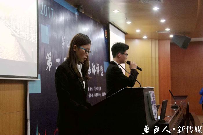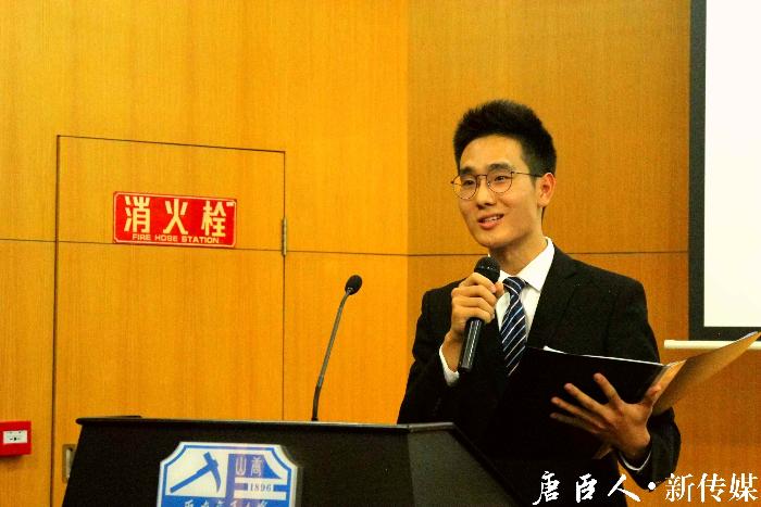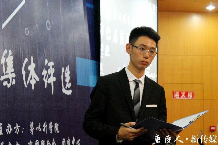 茅院(金融)2015-01张珊珊同学从班级概况、班级建设、班级未来展望三个方面详细解释了班级风貌。从发展过程中曾经获得的奖项到对于未来所做的展望与计划,张珊珊同学为在场所有人展现了一个优秀的班级体。最后,他们用一首茅金版《成都》表现了班集体团结而又幽默的学习生活氛围。