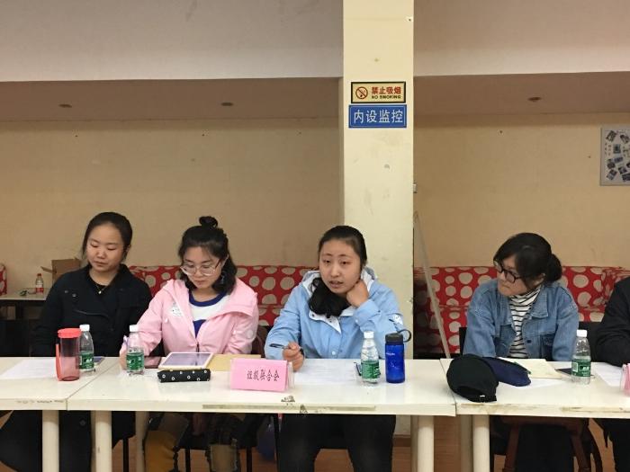 首先,理事长张博涵致开场白。张博涵谈到,各个组织在一个多月的时间里已经积累了相当的活动举办经验,但仍有以下几方面需要注意和改进:严格按照流程举办活动,加强与指导老师的沟通交流;注意活动现场细节,考虑嘉宾和观众的现场感受;举办活动时加强与其他活动的交流,做到互通有无,互相借鉴与学习;主席团要保持良好的学习习惯,做好表率。