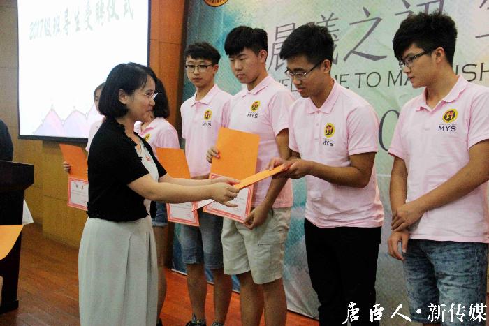 党总支书记栗民副教授上台为新生班导生颁发证书。