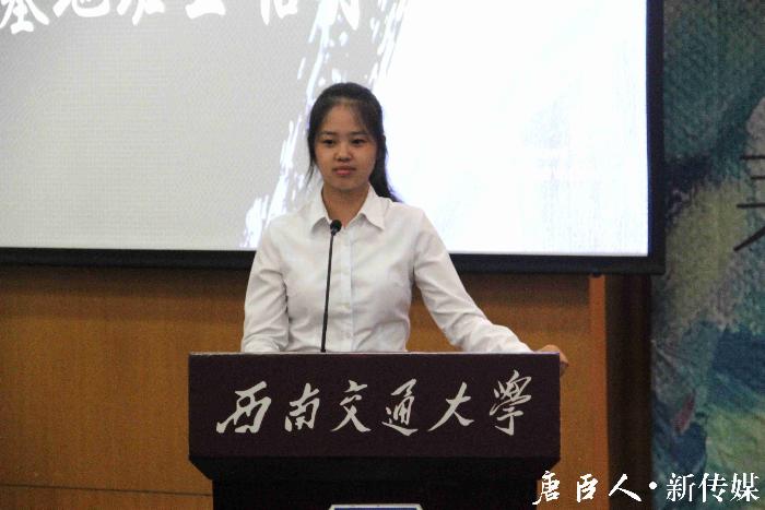 常务副院长郝莉教授首先上台为2017级新生代表赠书及学院院徽。郝院长为2017级新生精心挑选的《如何成为卓越的大学生》这本书,寄托了她对新生的殷切希望。随后,本次典礼进入到一个特殊的环节。2017级新生胡光同学满怀热忱,在来到欧美A片