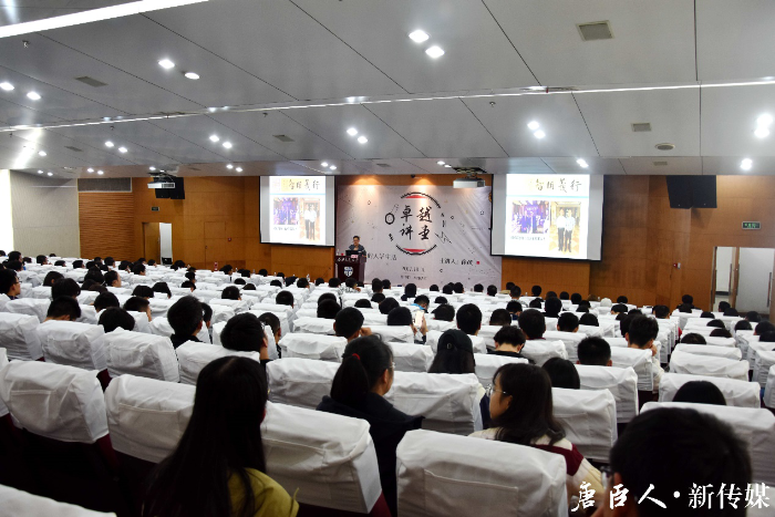 随后,徐茂老师讲到,作为新一代的青年应该有青春与梦想。他介绍了自己毕业之后的求职经历从坐办公室负责金融业务到进入政府当官员,又因觉得当官不适合自己辞职去当老师,他一直在折腾自己,一直在努力追求自己的梦想。他将“赢”拆成亡、口、月、贝、凡五个字,指导大家做一个危机意识,懂得负责任敢于发表见解,同时拥有健康身体的新一代青年。他说,有梦想的人都是孤独的,有大理想的人一开始都是不被理解的他鼓励同学们人生就应该折腾着过,不要害怕孤独,要勇敢追梦。