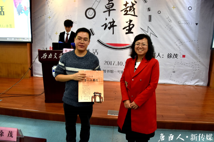 在热烈的掌声中,徐茂老师深深鞠躬随后由王霞老师代表欧美A片 徐茂老师赠礼,并合影留念至此,卓越讲堂之“过折腾的大学生活”讲座圆满结束。相信到场同学们都学到了很多,在未来的生活中能够更加坚定地努力实现自己的理想。
