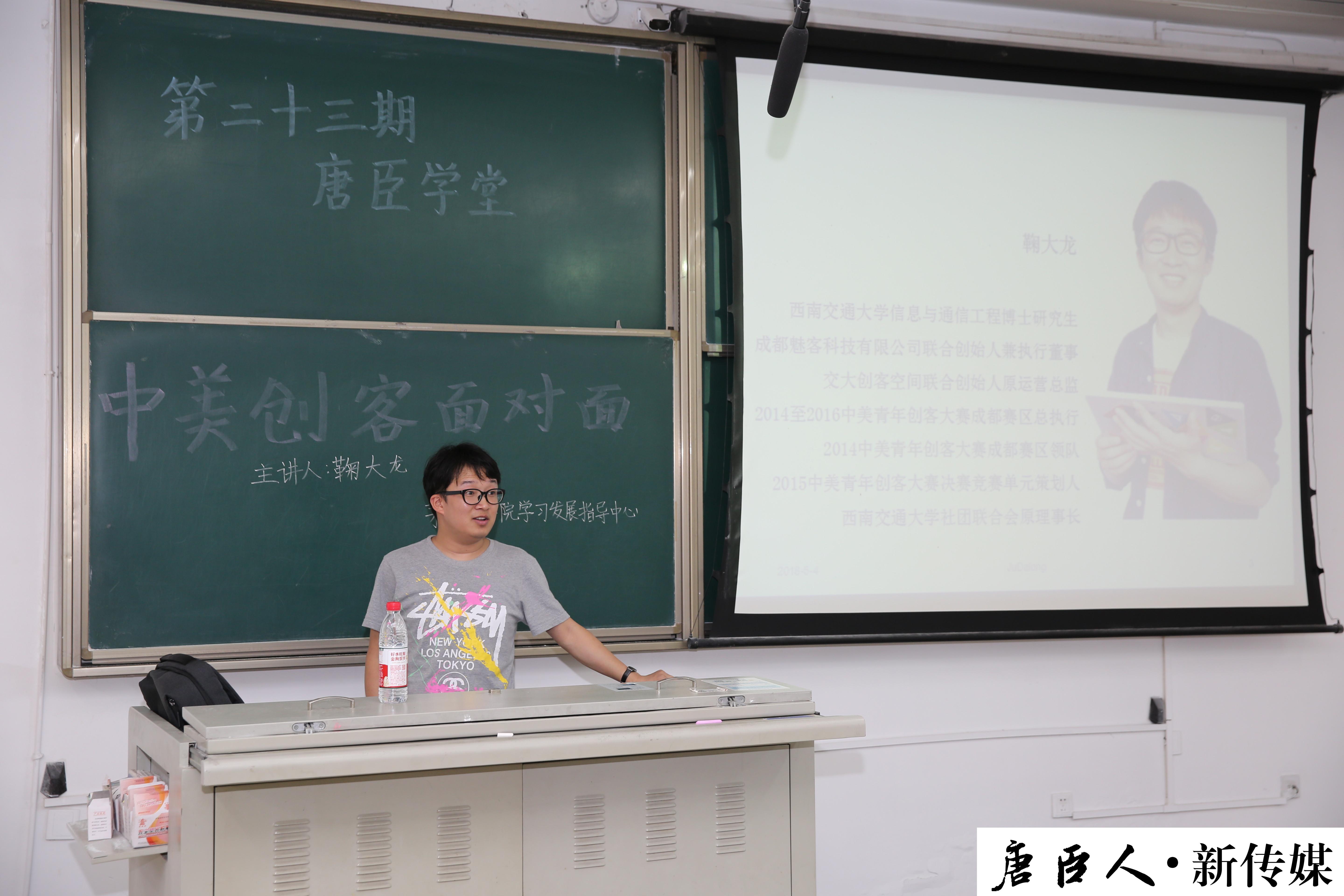 主讲人鞠大龙是我校信息与通信工程博士研究生,也是成都魅客科技有限公司联合创始人兼执行董事,交大创客空间原运营总监和2014至2015中美青年创客大赛成都赛区赛区总执行。