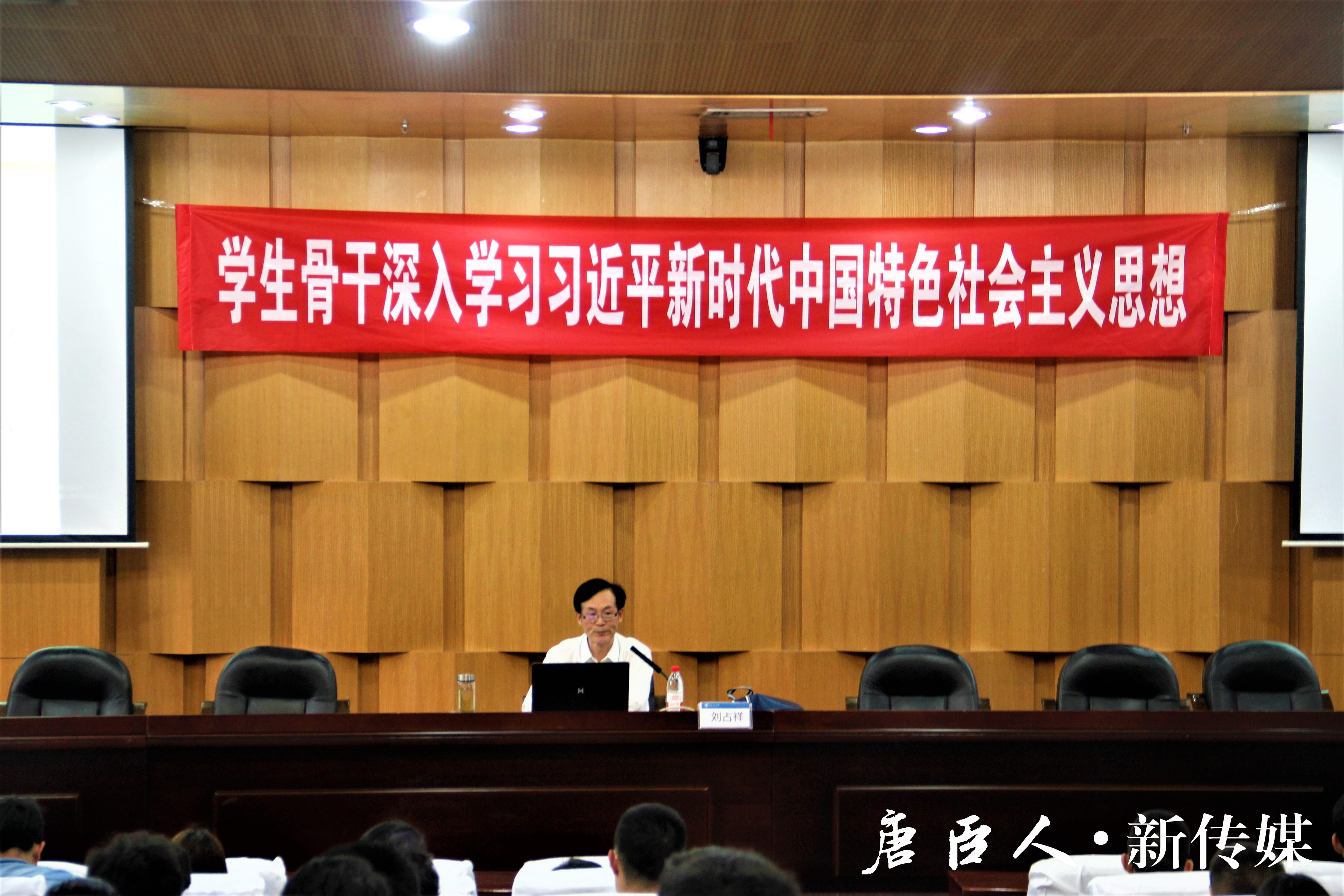 团委书记、辅导员毛盾老师,主讲人为博士生导师、马克思主义学院党委书记刘占祥教授。
