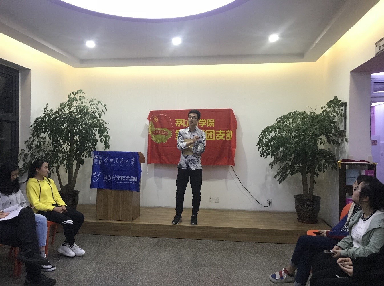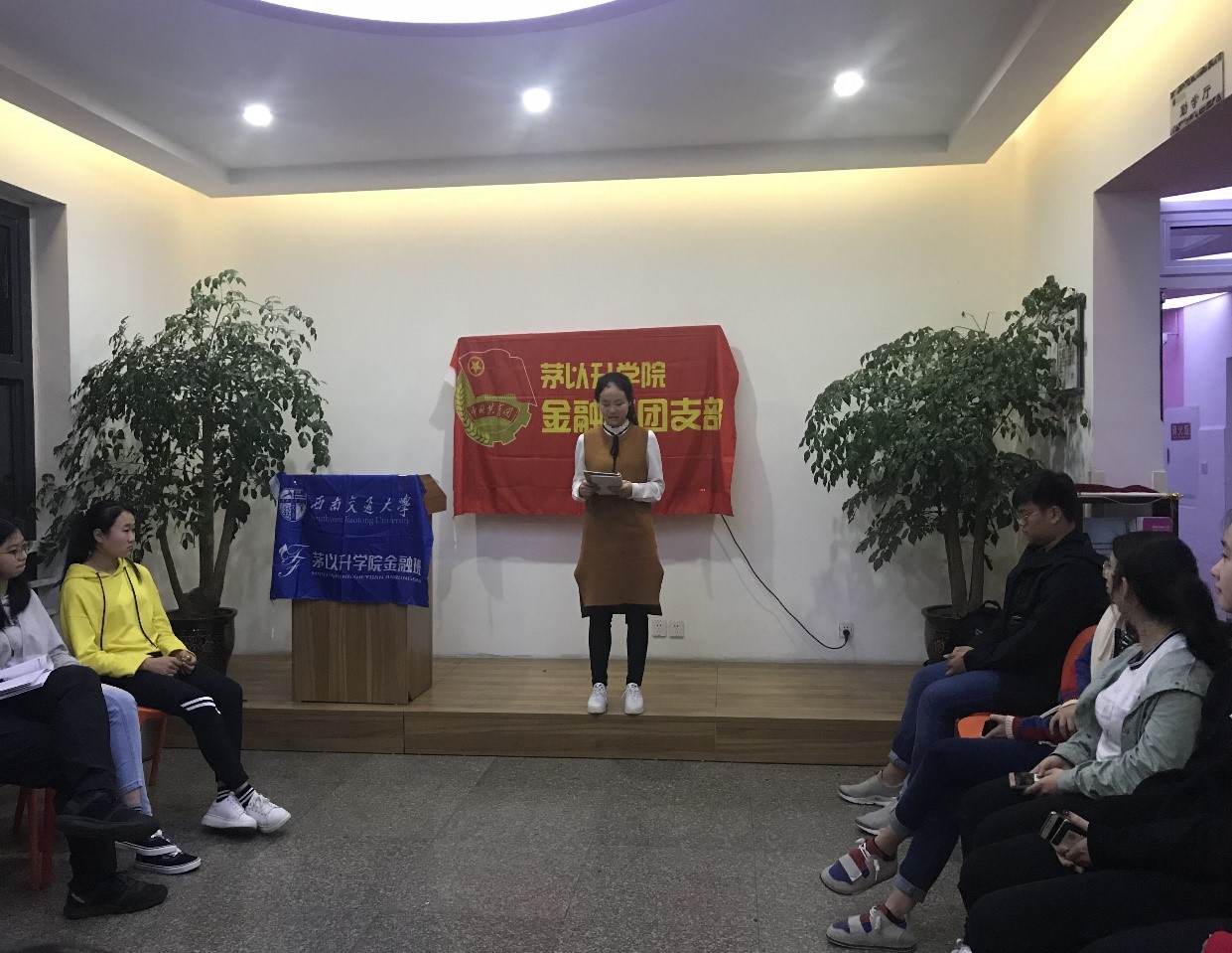 第二十二次代表大会的精神。在上学期中,金融班与中文班联合举办的“此时无声胜有声”交通公益志愿活动就充分响应了团委“实践育人”的号召,以志愿者内心认同为源动力,以校地合作为基础平台。与此同时,校图书馆方面也充分认可了该志愿活动的成效,并热烈欢迎金融班与中文班在本学期继续开展该活动。通过征集同学们的意愿,金融班在本学期也会继续进行此次交通公益活动,以服务同学、服务大众的初心为学校作出自己的贡献。他也提到,“第二课堂”是我们应当予以重视的部分。我们必须按照学院的要求,积极参加各模块的第二课堂活动,使自己得到全方面的培养和发展。