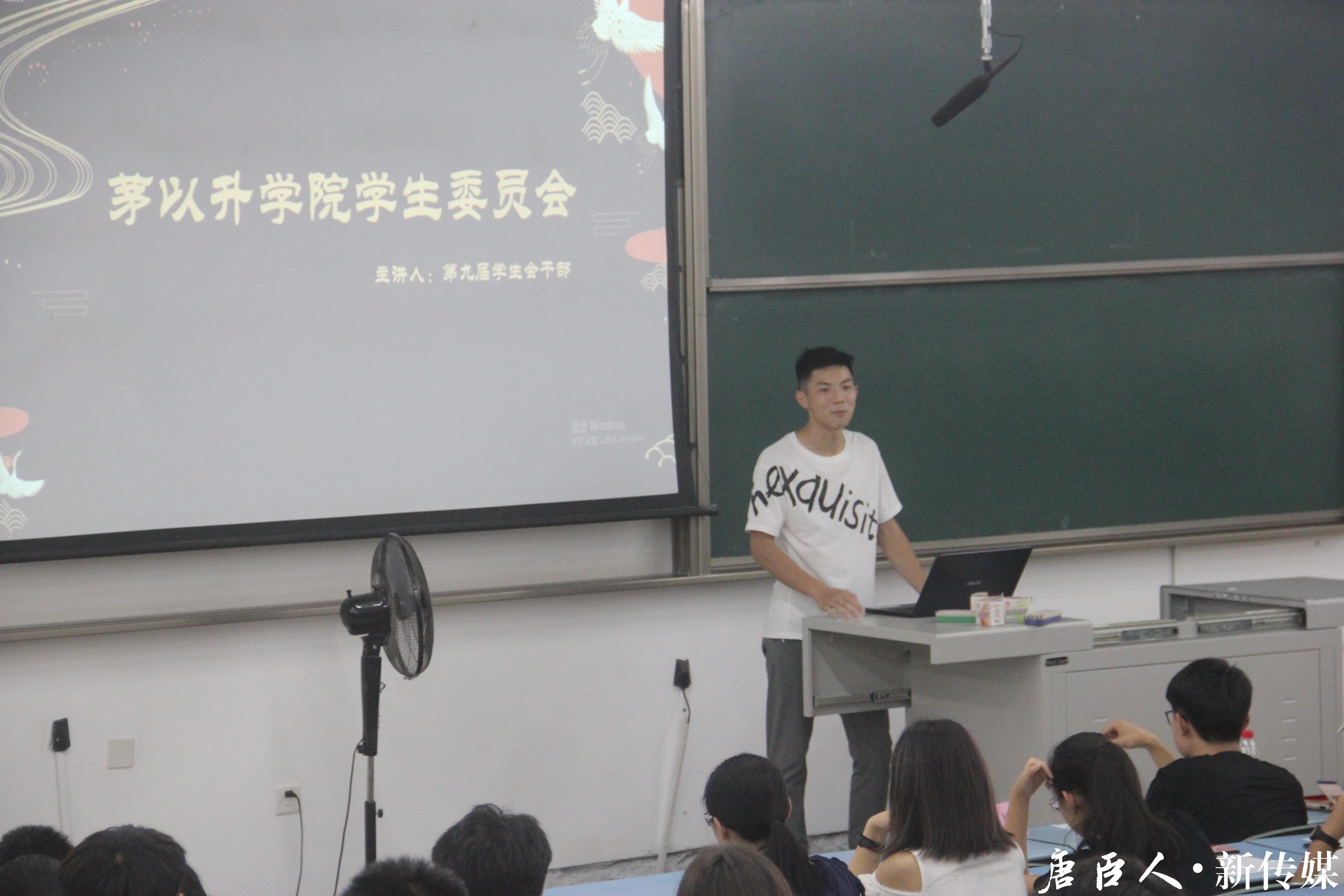 官方媒体,唐臣人·新传媒成立于2011年。经过六年多的筛选与改组,它已经拥有了完备、合理的协会制度和有序、灵活的人员分配。其组织下辖文字编辑部、摄影部和新媒体部三大部门,拥有学院最为专业的文字、摄影、新媒体工作者,并具有负责学院各活动的采访、报道及视频与海报制作,为学院撰写通知、公告和录制官方视频,提供个人写作平台和负责院网、官微、官博的内容更新等职能。随后,文字编辑部、摄影部、新媒体部依次作了部门介绍,强调了彼此之间的分工与合作,并凭借风趣的讲解赢得了阵阵掌声。