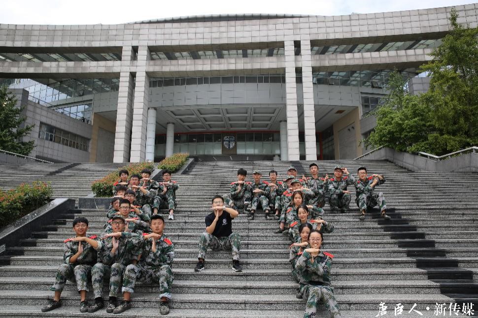 汇演结束后,全体新生前往图书馆拍摄军训合照。不同专业的同学们充分发挥想象力,拍摄出的军训合照极具创意,饱含青春活力,相信同学们已经对未来的大学生活充满了期待与憧憬。