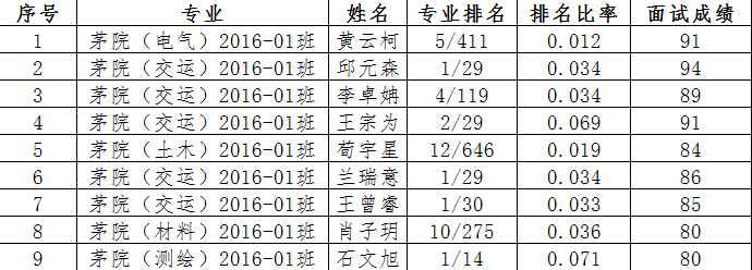 参考国际交流与合作处的项目选拔要求,经学生本人申请,茅以升学院国际项目委员会资格审查,同等学力下,参考全英文口语面试成绩,拟推荐以下9名同学作为候选人参加学校选拔: