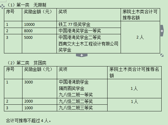 (二)土木工程专业奖助学金(共4名,名额由土木工程学院划分)