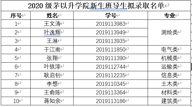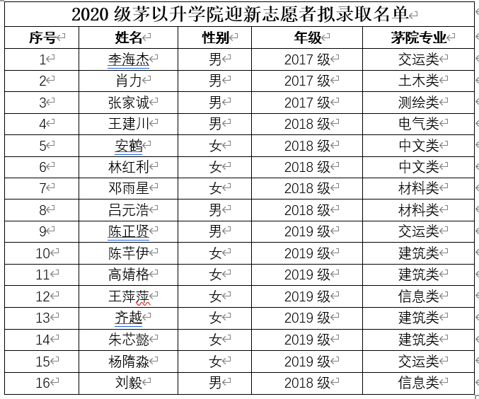 新生班导生,现将具体名单公示如下: