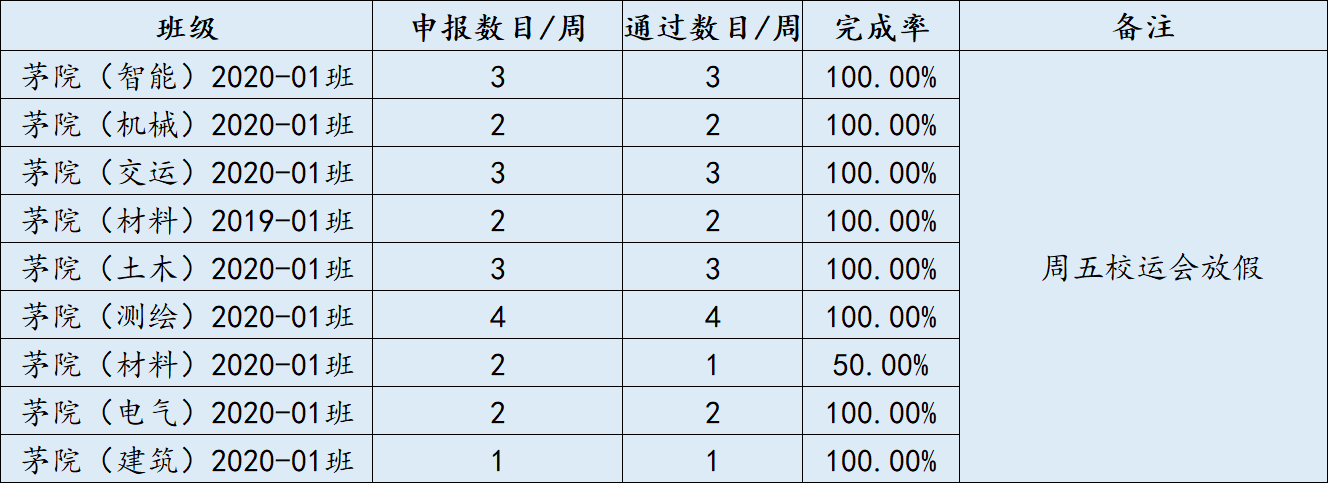 经认证学风办公室统计,学院审核,现将各示范班级第七周考核情况予以公示: