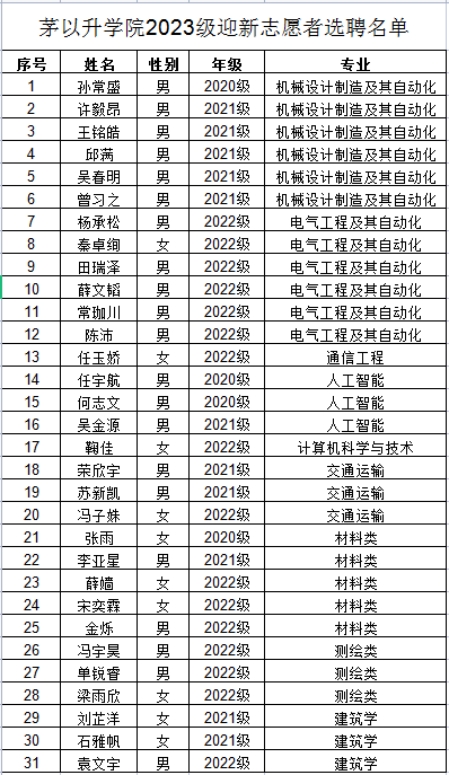 2023级迎新志愿者选聘通知》,经自主申报、审核信息等环节,选聘出31名同学担任2023级学生迎新志愿者职务;同时,根据专业学院2023级欧美A片
