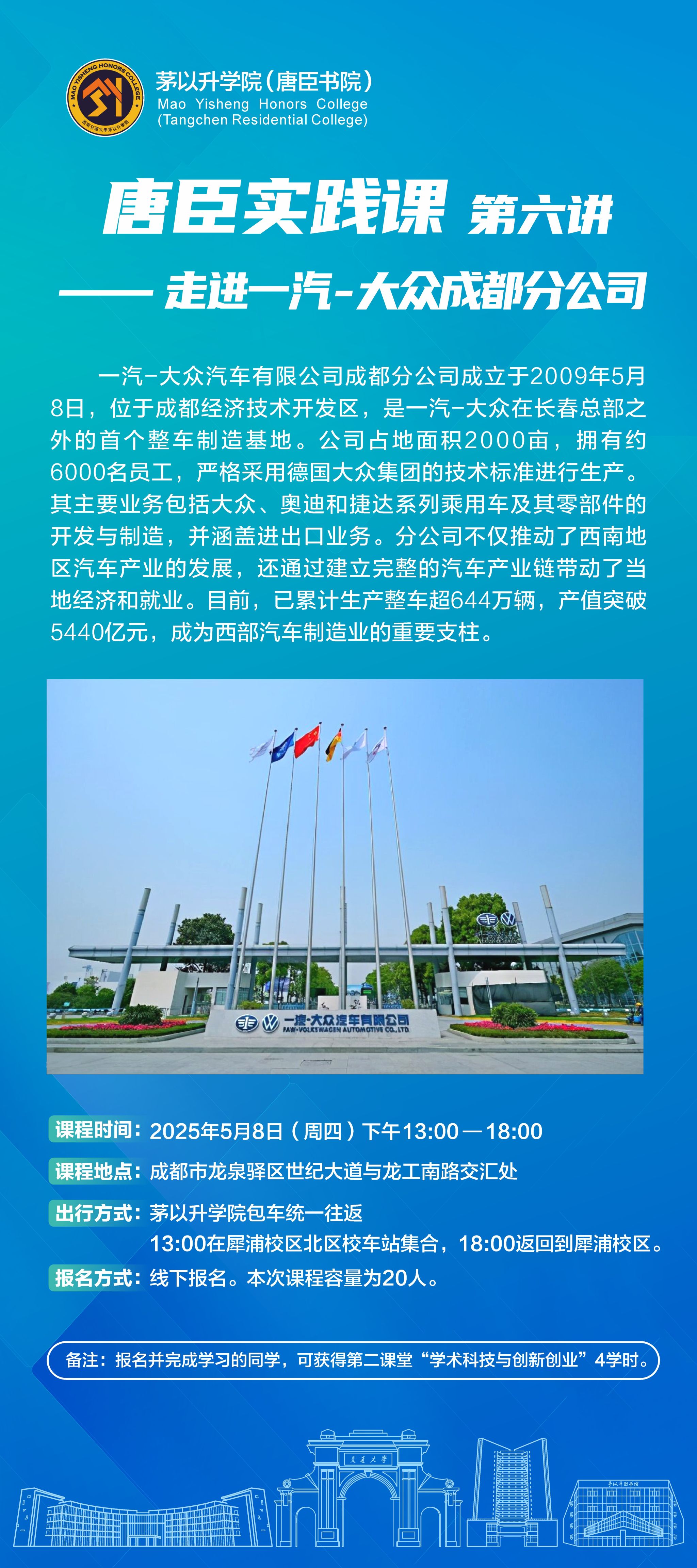 【课程预告】唐臣实践课第六讲——走进一汽-大众成都分公司!