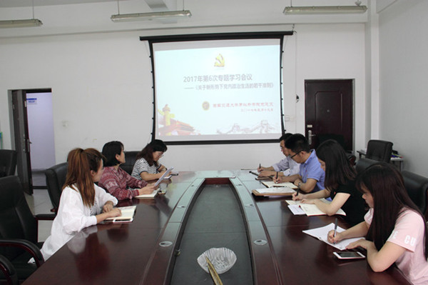 党总支组织教工第一党支部和学生第二党支部全体党员在犀浦校区X1306会议室召开学习会,专题学习了《关于新形势下党内政治生活的若干准则》、《中国共产党党内监督条例》,并专题研究部署了学院自查和党支部自查工作。学院党总支书记、副书记、党总支委员、学生党支部书记以及全体学生党员参加了会议。欧美A片