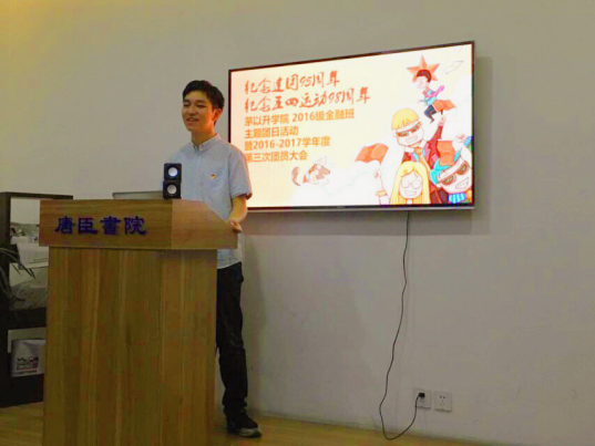大会第一项,全体起立,奏唱国歌。大会第二项,团支书组织支部观看青年榜样习近平、习近平在中国政法大学等视频,深入学习习近平总书记2013年在同各界优秀青年代表座谈时的讲话和我校党委副书记陈志坚教授在五四表彰大会的讲话,并且与支部成员进一步探讨其深刻意义。大会第三项,作为青马工程学习者的团支书向支部成员传达了怎样在能拥有强大的执行力。并结合所学管理学内容,加深了同学们对其的理解。大会第四项,入党积极分子向支部成员传达了党课所学到的精神,并分享了孔繁森不畏艰辛任劳任怨的精神。大会第五项,由团支书领誓,全体支部成员重温入团宣誓词。大会第六项,全体起立,奏唱团歌,大会胜利闭幕。
