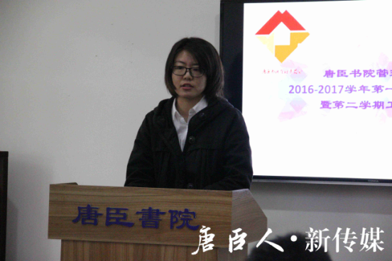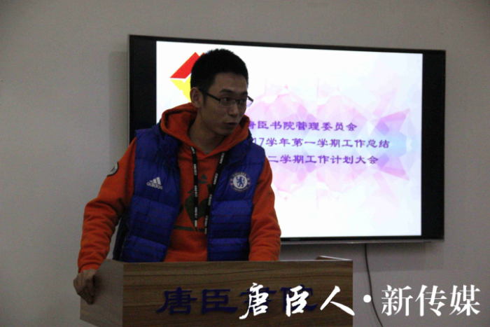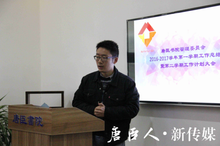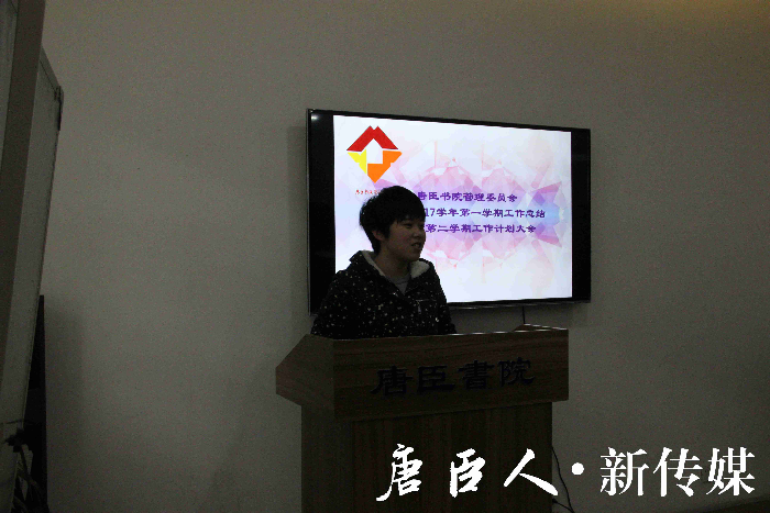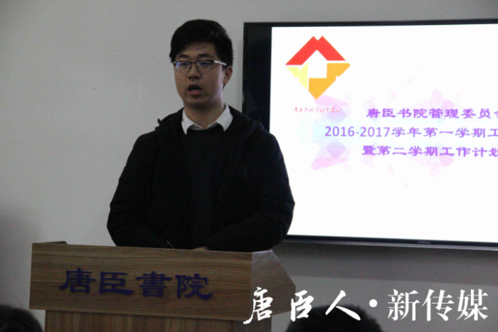 随后,副主席毛润丰对上学期书院管理委员会各部门工作进行了总结陈述,包括进行了对既有制度的修订,增设秘书处和纪检部两大部门,完成了上一学年文明寝室的评定和建立勤工助学小组等。她重点提出本学期应加强对公共区间的管理的工作规划,并鼓励大家积极探寻更好的管理方案。