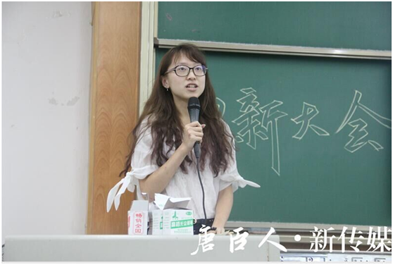 大会伊始,王霞老师为本次招新致辞。她提到,2016级新生正在经历着从高中到大学的蜕变,大学四年,是培养个人素质能力、塑造个人的重要阶段,根据自己的兴趣、特长合理选择心仪的团学组织,必定能在这里收获与成长。此次的招新大会也是各组织、各部门展示形象、能力的契机。王霞老师的发言赢得了全场雷鸣般的掌声。