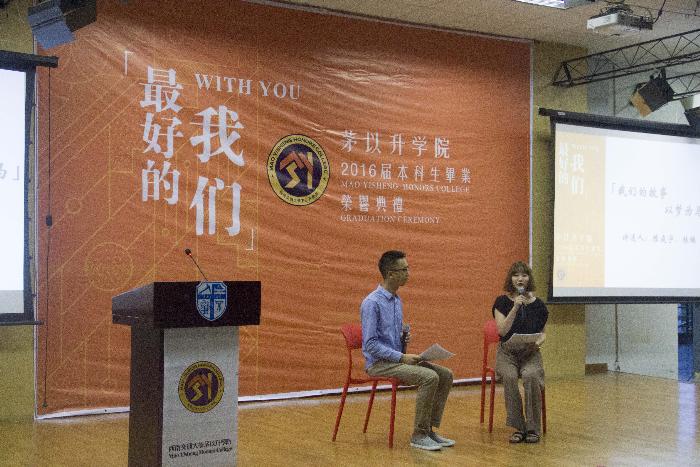 灯光暗,伴着悠扬而深沉的钢琴曲Kiss the Rain,茅院2012级4班的陈庭宇、桂姝缓缓走上舞台,以青春为名,将这四年的青春时光娓娓道来。曲终,典礼主持欧美A片