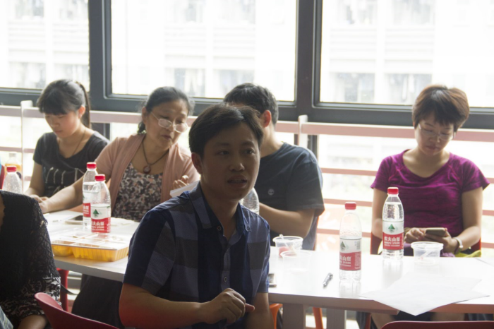 来自心理研究与咨询中心的冯缙老师在谈到自己的课程《设计心理学》时,表示自己目前还不是十分的满意。因为设计本身具有一定的难度,且十分抽象,不是一堂课就可以懂的,所以当学生设计不出产品时,内心难免会产生一种挫败感。对于如何解决这些问题,冯老师提出了几点想法,一是需要更多设计专业的老师来一同合作,二是给学生布置一些或大或小的训练。针对冯老师遇到的问题,在场的老师展开了讨论,郝莉教授希望冯老师能够尽快度过平台期。其他老师也指出,在尝试跨学科课程的建设时应不怕失败,也可以时刻提醒学生,设计在生活中无处不在,这样学生才会敢于去尝试设计,才有可能会成功。