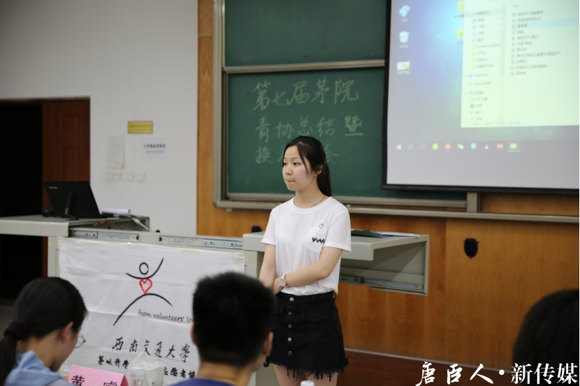 青年志愿者协会第七届会长栗广暄同学进行工作总结,并对未来工作进行展望。栗广暄同学首先对过去一年中青协举办的各项活动进行了回顾,并对各部门的具体工作进行了列举和总结归纳。同时他也针对在茅院团学组织调整中青协职能的变化,对接下来的工作提出了建议。在最后,他对青协的未来表达了自己的期望。