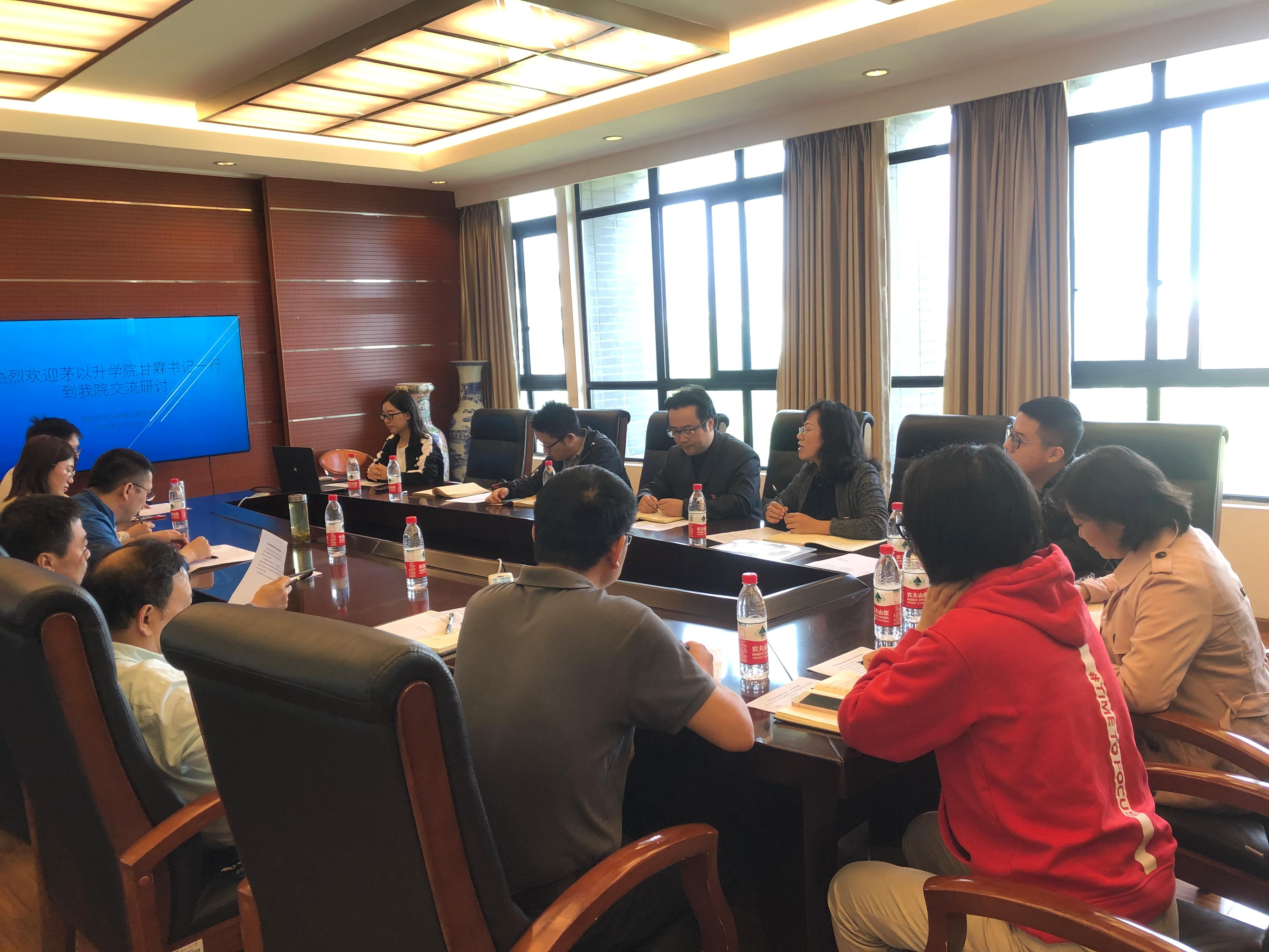 党总支书记甘霖、党总支副书记王霞等一行前往电气工程学院、地球科学与环境工程学院进行学习交流。