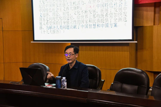 讲座开始,刘占祥教授以我校杨杏佛老先生、竺可桢先生和茅以升先生等一批人才为引,带领我们把握中国特色社会主义新时代的历史方位。中国特色社会主义进入新时代意味着中华民族迎来了实现中华民族伟大复兴的光明前景,也意味着科学社会主义在世界上高高举起了中国特色社会主义伟大旗帜,更意味着中国特色社会主义为解决人类问题贡献了中国智慧和中国方案。