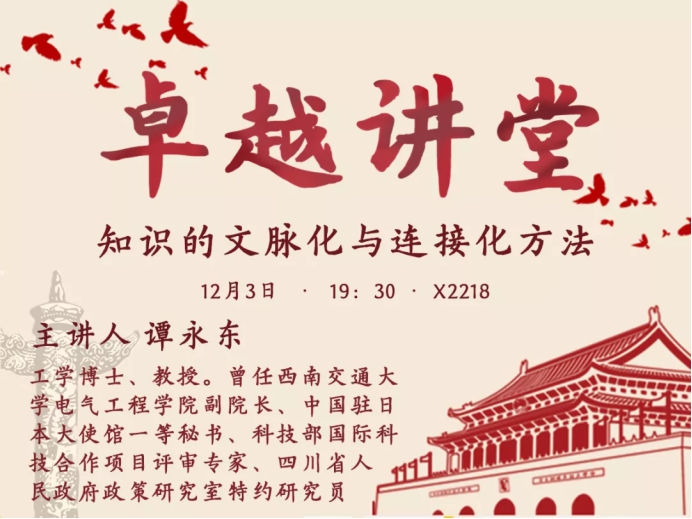 第三十期卓越讲堂之“知识的文脉化与连接化方法”主题讲座于X2218举行。
