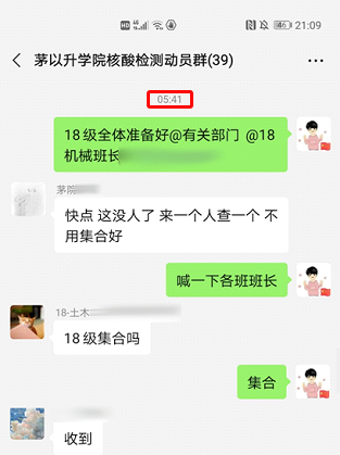 核酸检测动员群,力求将每一位茅院学子的检测落到实处,为每一位茅院学子的安全负责到底。