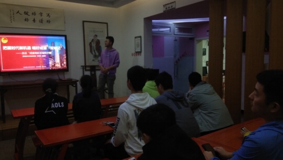 首先由团支书王梓尧同学向大家介绍,本次团课的主题为——走近“成渝地区双城经济圈”,他将以PPT的形式向大家简要说明成渝地区经济现状与未来趋势。之后,他说本次团课的目的在于让大家对于成渝地区的经济形势有一个直观的认识,了解成渝地区经济在全国经济格局中的战略意义,并在将来积极投身到祖国的经济建设中去。