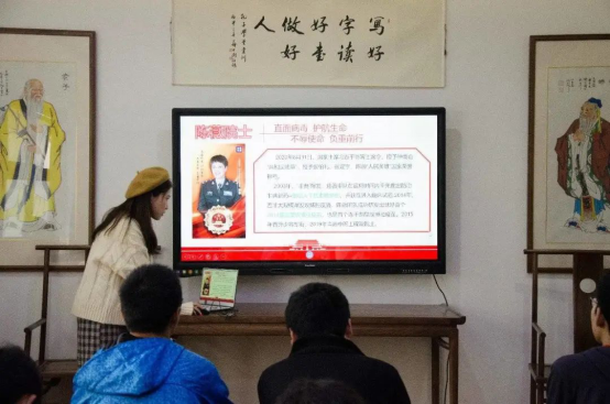 首先,朱宇华带领全体同学学习了2020年全国抗击新冠肺炎疫情表彰大会具体内容及传达的精神。并且重点宣传学习了张定宇、陈薇和张伯礼等战“疫”英雄。引导同学学习先进人物,把自己的理想同国家的理想联系在一起,担当奉献,砥砺奋斗。