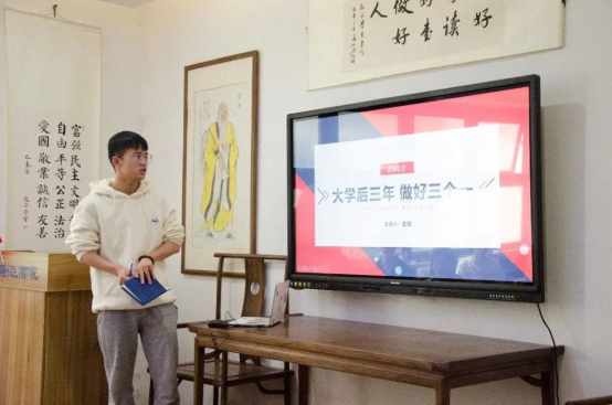 最后,我班组织了经验分享与答疑解惑环节,由刚刚经历国庆实习的学长学姐们为20级新生分享自己的实习或大学生活的经验。