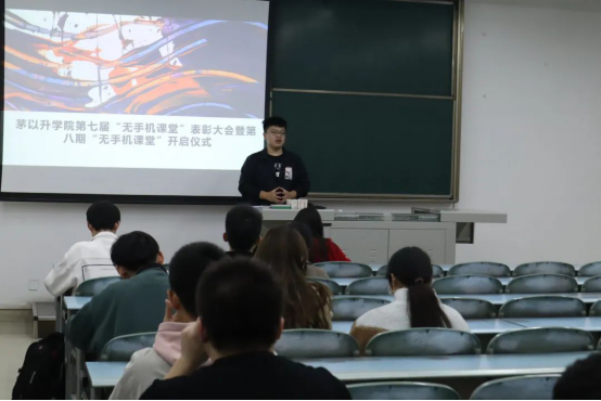 活动伊始,主持人白启恒首先给大家介绍了“无手机课堂”开展的意义,展示了无手机课堂至今走过的七个年头内的显著成效,并表示:“无手机课堂”活动为我院学子良好学习氛围的养成做出了很大的贡献。