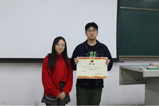 颁奖结束,无手机课堂先进班级代表19级测绘班应涛泽同学上台进行发言,简单分享了班级在参与“无手机课堂”活动中的收获。